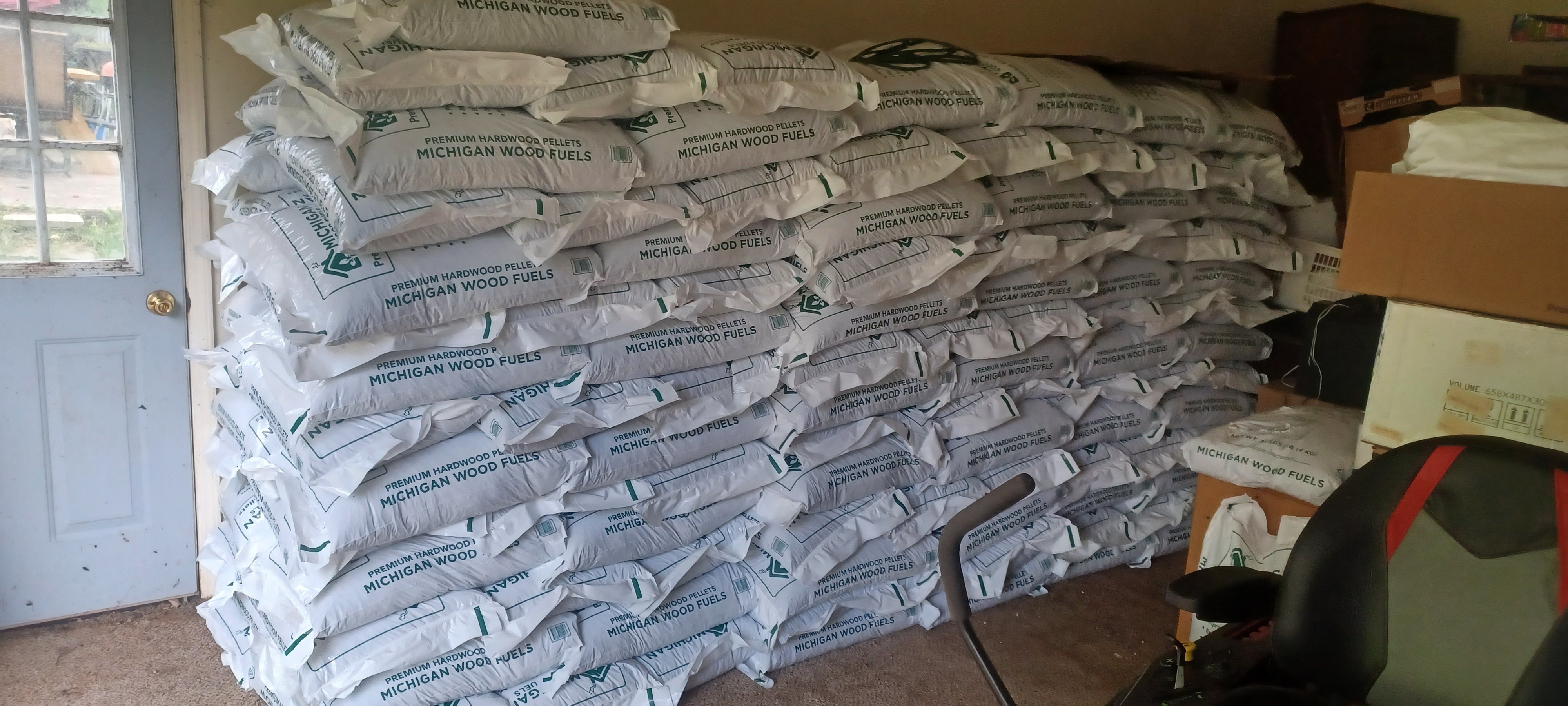 Been busy. Finished getting my wood pellets for this winter picked up, unloaded and stacked. Four tons (8000) pounds in 40 pound bags. Whew!!! Not bad for a 72 year old codger. One more thing I can check off my list.