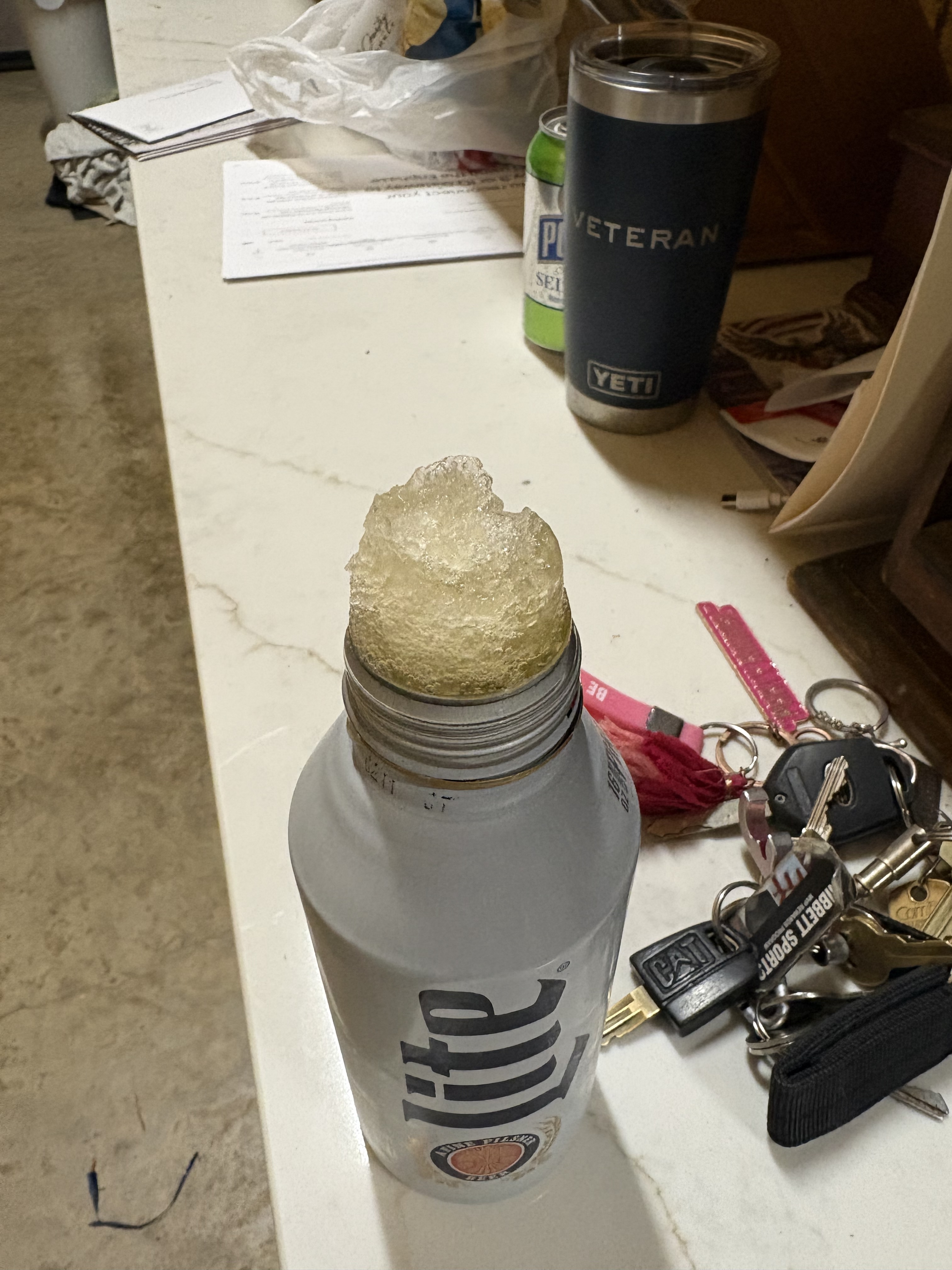 Cracked a beer when I got home. This was in the beer fridge outside. Was -16 when I got up at 0430. Must’ve been colder than that overnight.