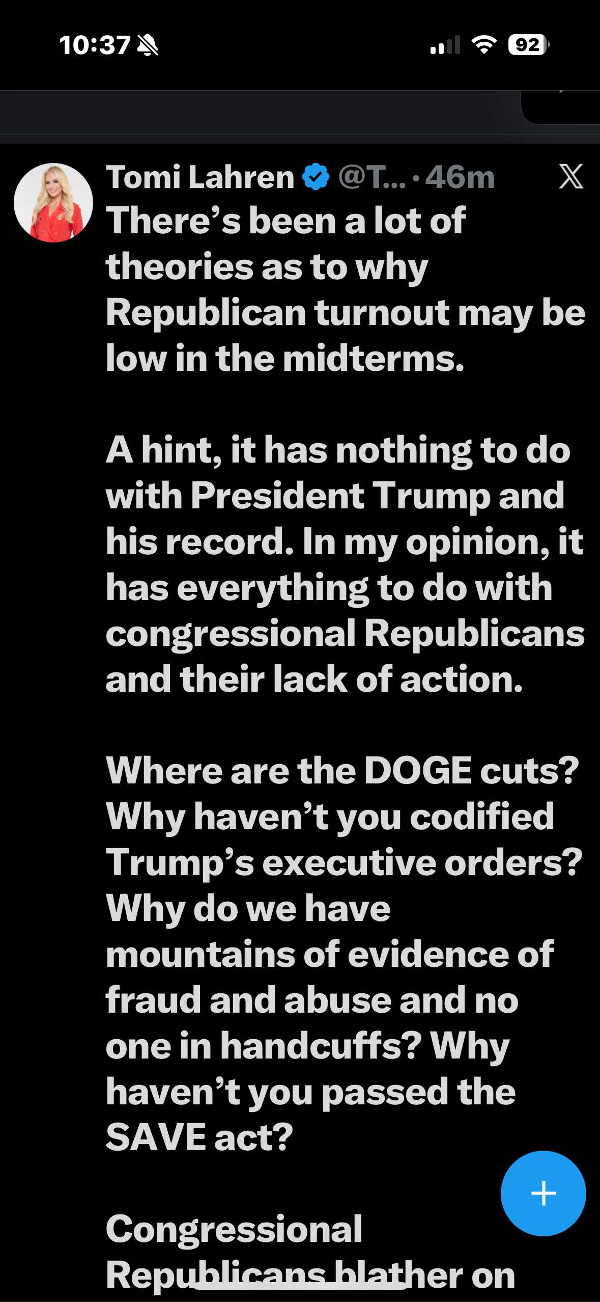 Tomi Lahren’s post from X! Sums it up and I agree! My opinion, Thune and his RINOs are no good for the USA!